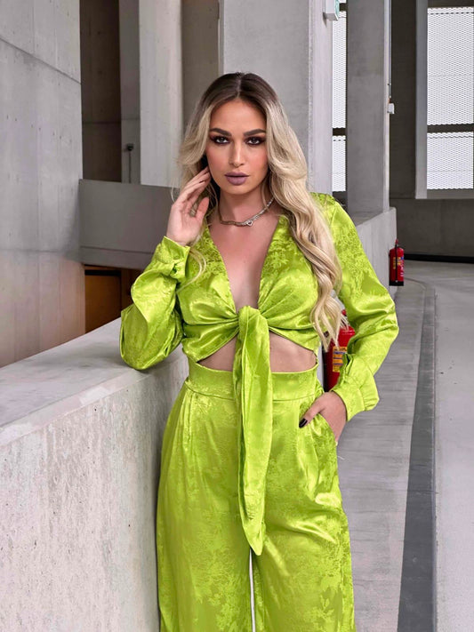 • Ανοιξιάτικο floral σετ που αποτελείται από μακρυμάνικο top που δένει στο στήθος με κουμπάκια στο τελείωμα. Ψηλόμεσο παντελόνι με λάστιχο στο πίσω μέρος και φάσα ζώνη. Διαθέτει τσέπες. Άνετη εφαρμογή που καλύπτει μεγέθη xs s m l-xl.