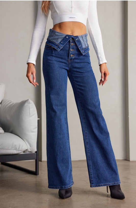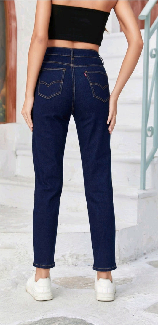 Σκούρο μπλέ τζιν παντελόνι ψηλόμεσο