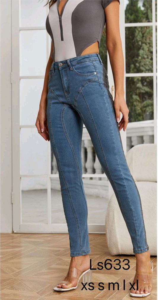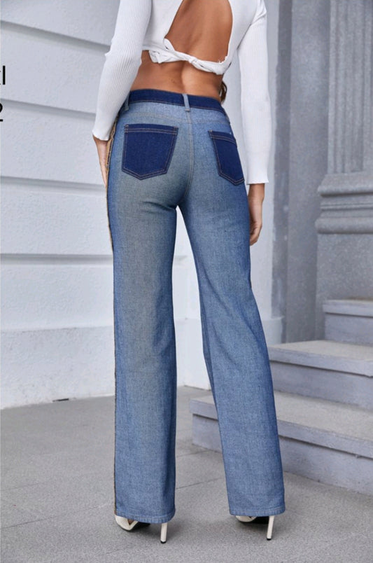 Δίχρωμο τζιν ψηλόμεσο μαύρο μπλε
