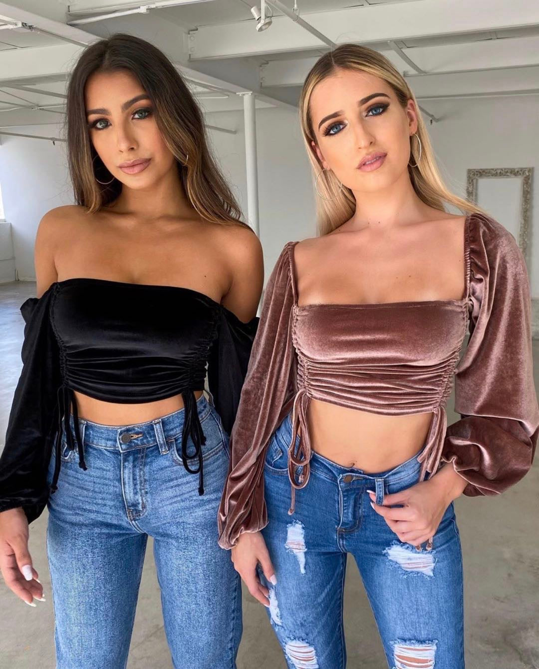 Βελούδινο crop top με σούρες