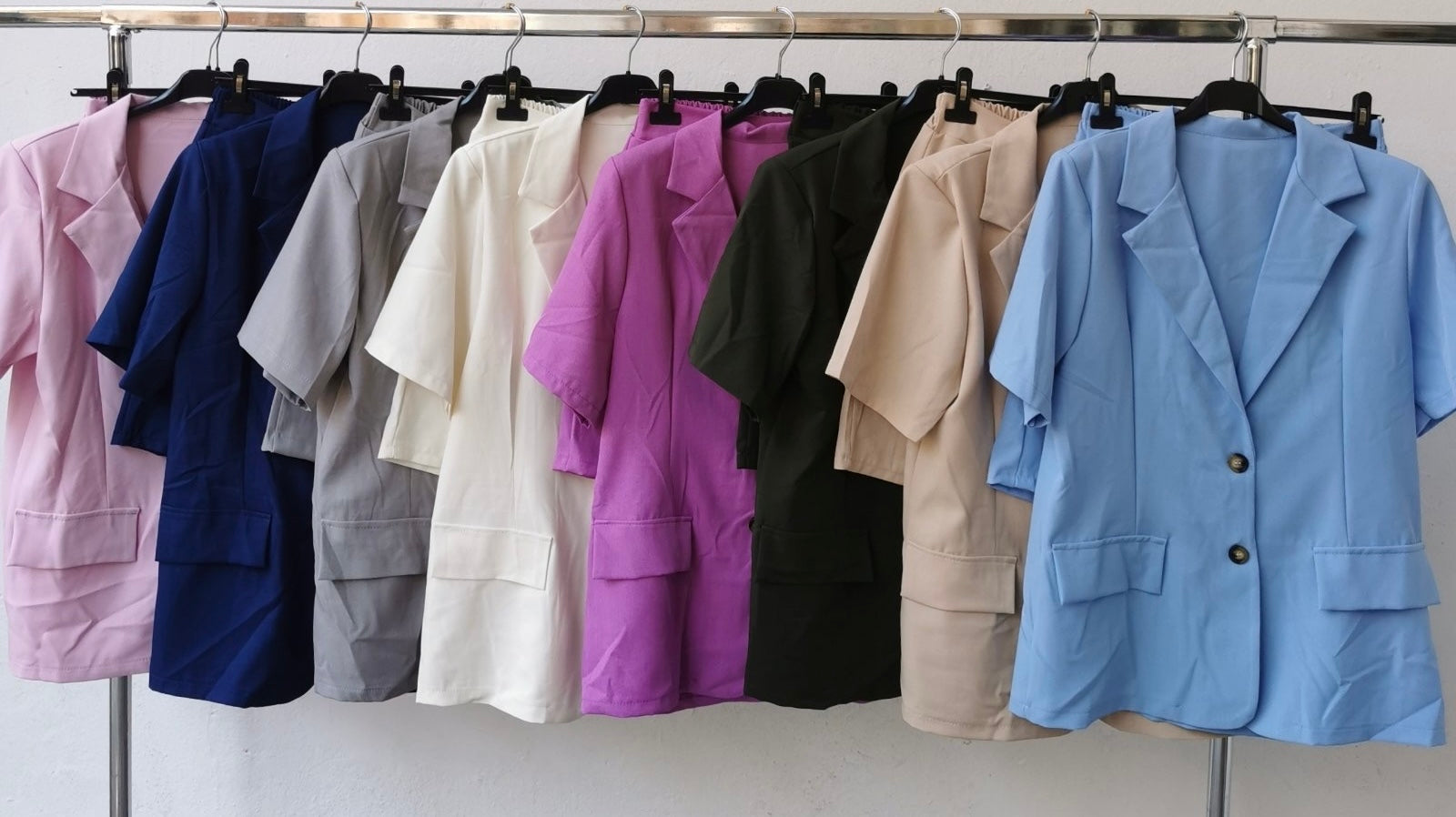Σετ που αποτελείται απο κοντομάνικο oversized σακάκι που κλείνει με κουμπί και σορτσάκι ψηλόμεσο με λάστιχο στη μέση σε άνετη γραμμή.