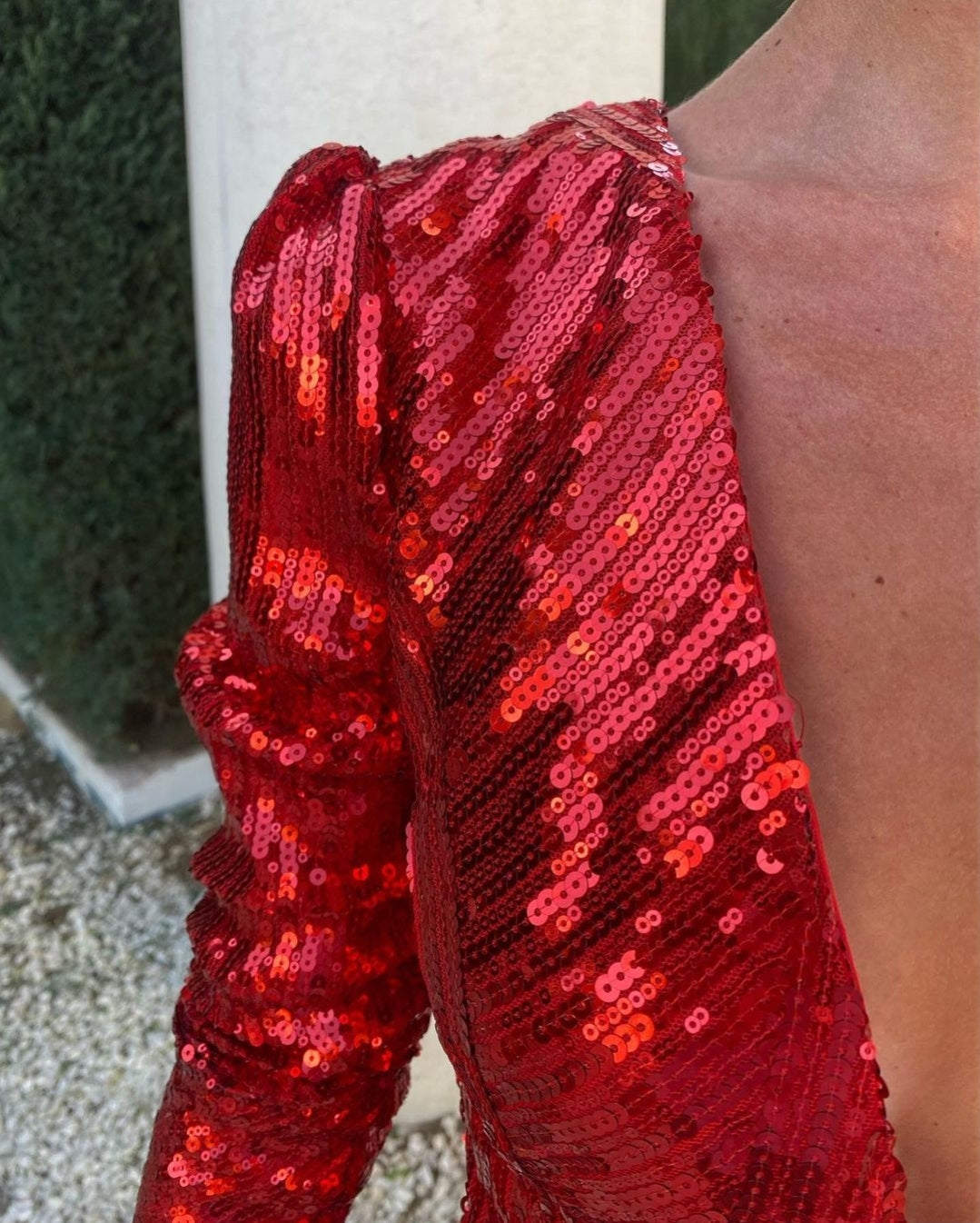 Μίνι φόρεμα με παγιέτες, μακρύ μανίκι και βαθύ ντεκολτέ.Διαθέσιμο σε μαύρο,κόκκινο, ασημί, πράσινο, magenta, πετρόλ.Κλείνει με φερμουάρ στην πλάτη.Διαθέτει φόδρα.