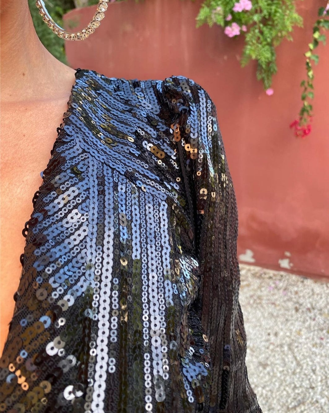 Μίνι φόρεμα μαύρο με παγίετα μακρυμάνικο