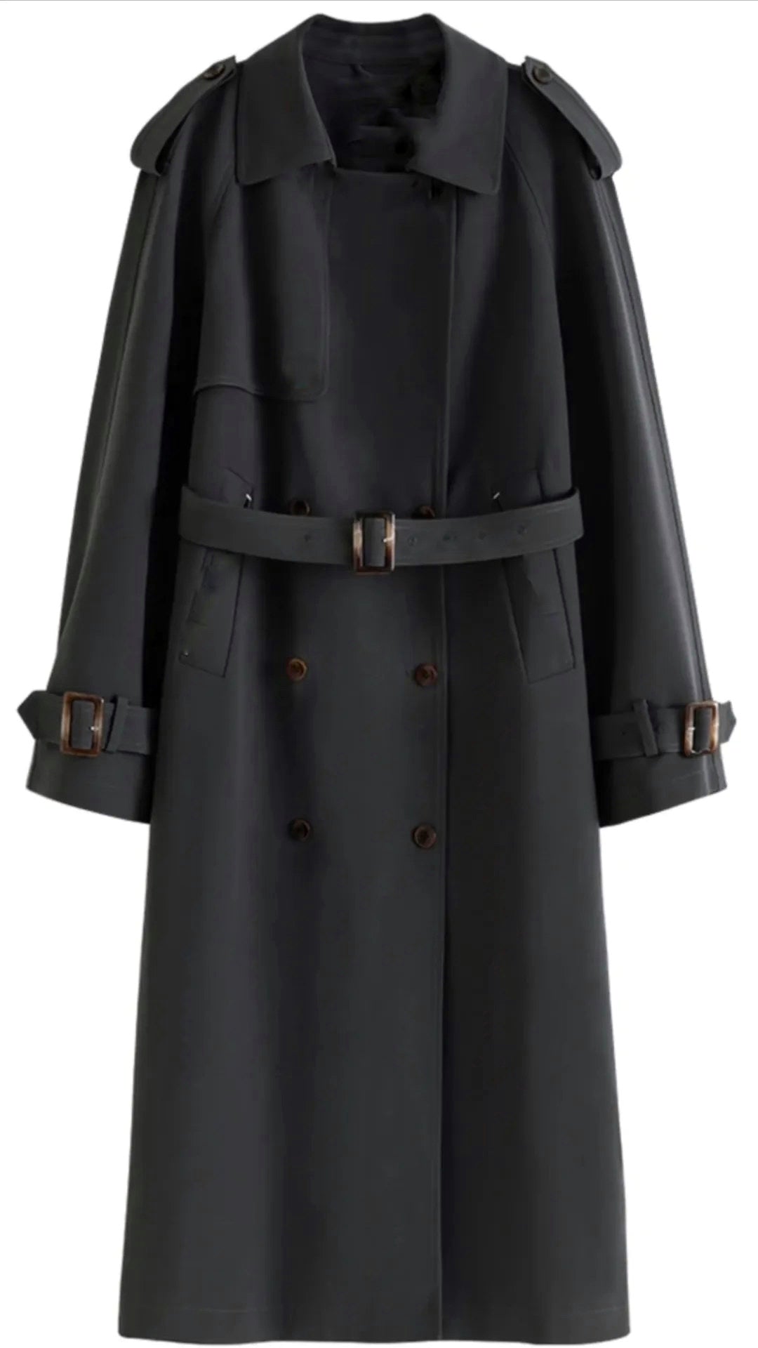 Μαύρη καπαρντίνα με λεπτομέρειές κουμπιά και λουράκια. Κλείνει με κουμπιά και διαθέτει ζωνάκι αφαιρείται. Διαθέτει σατέν φόδρα. Διαθέσιμη σε δύο μεγέθη s/m l/xl άνετη εφαρμογή.