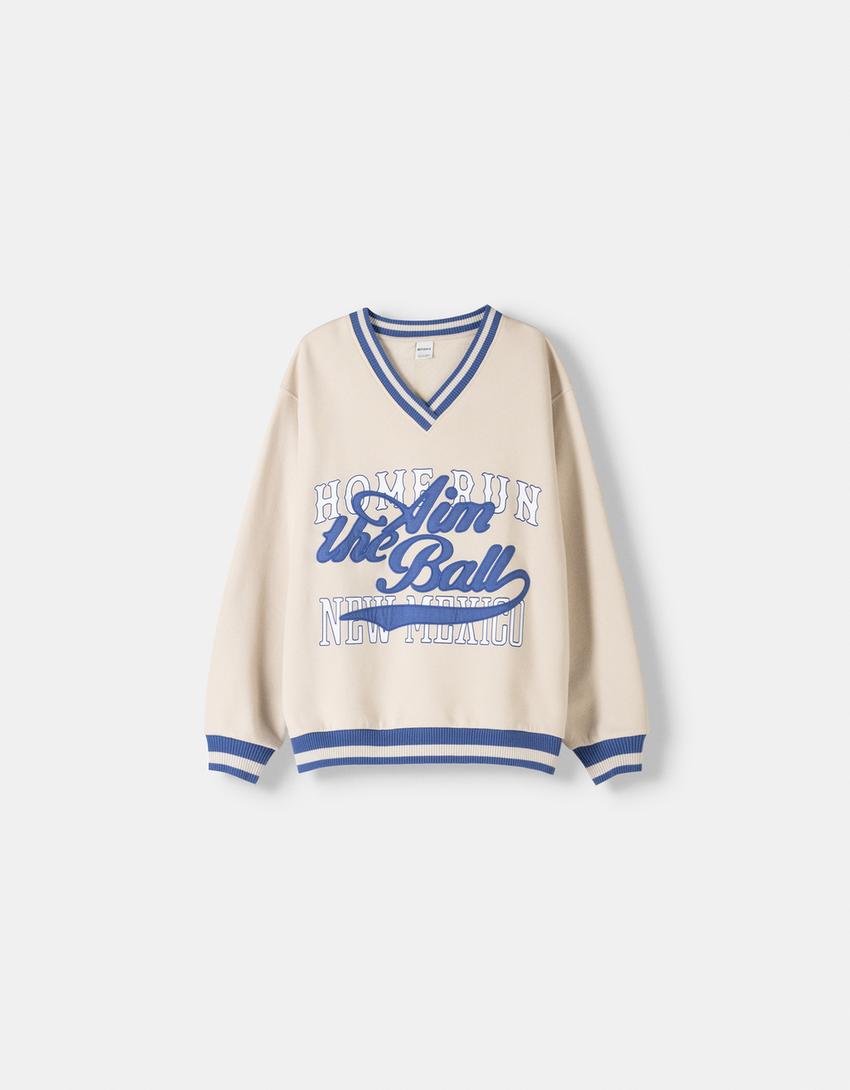 Ζεστό άνετο μπεζ φούτερ με V λαιμό με λάστιχο και στα μανίκια.Διαθέσιμο σε δύο αποχρώσεις, σιέλ ή Μπορντό.