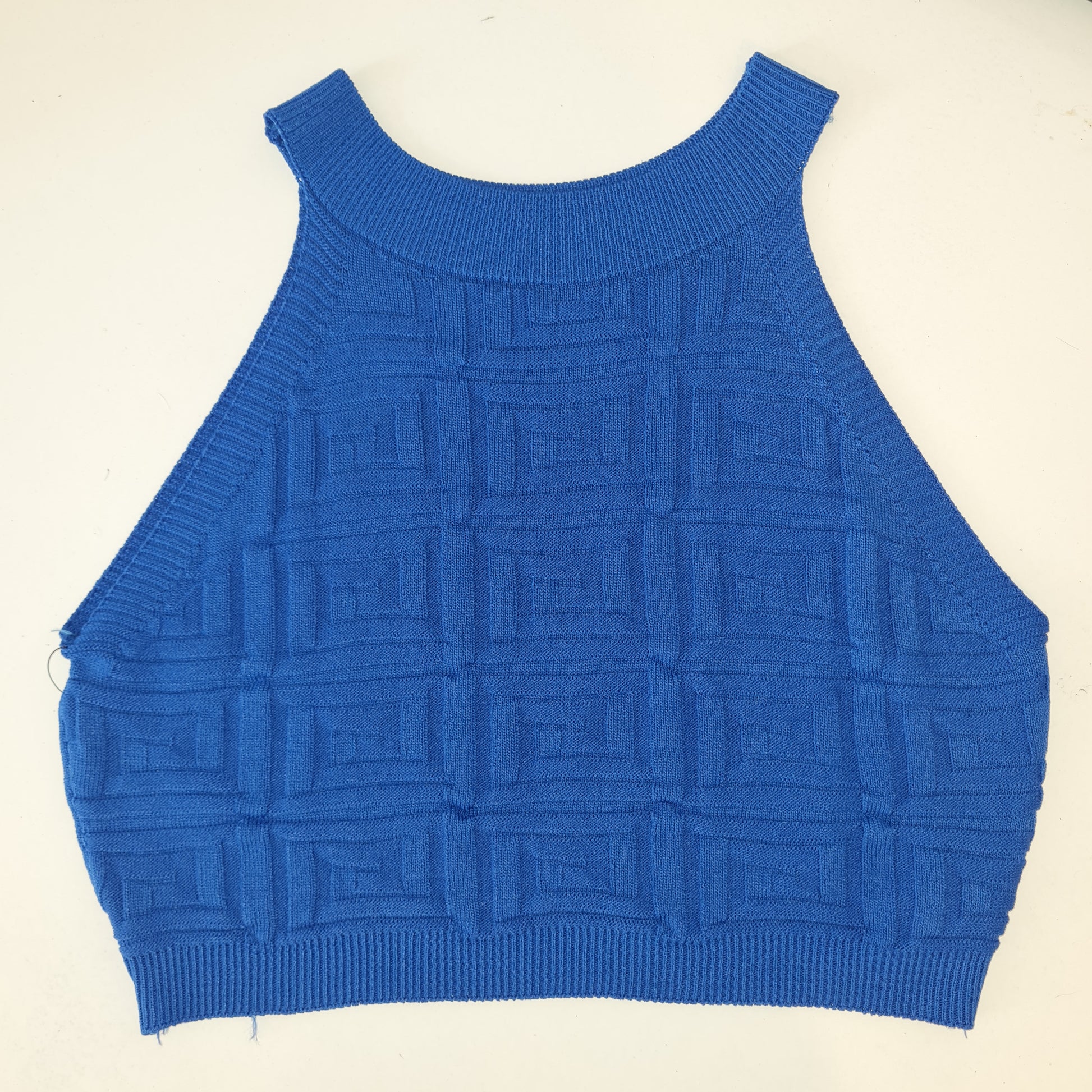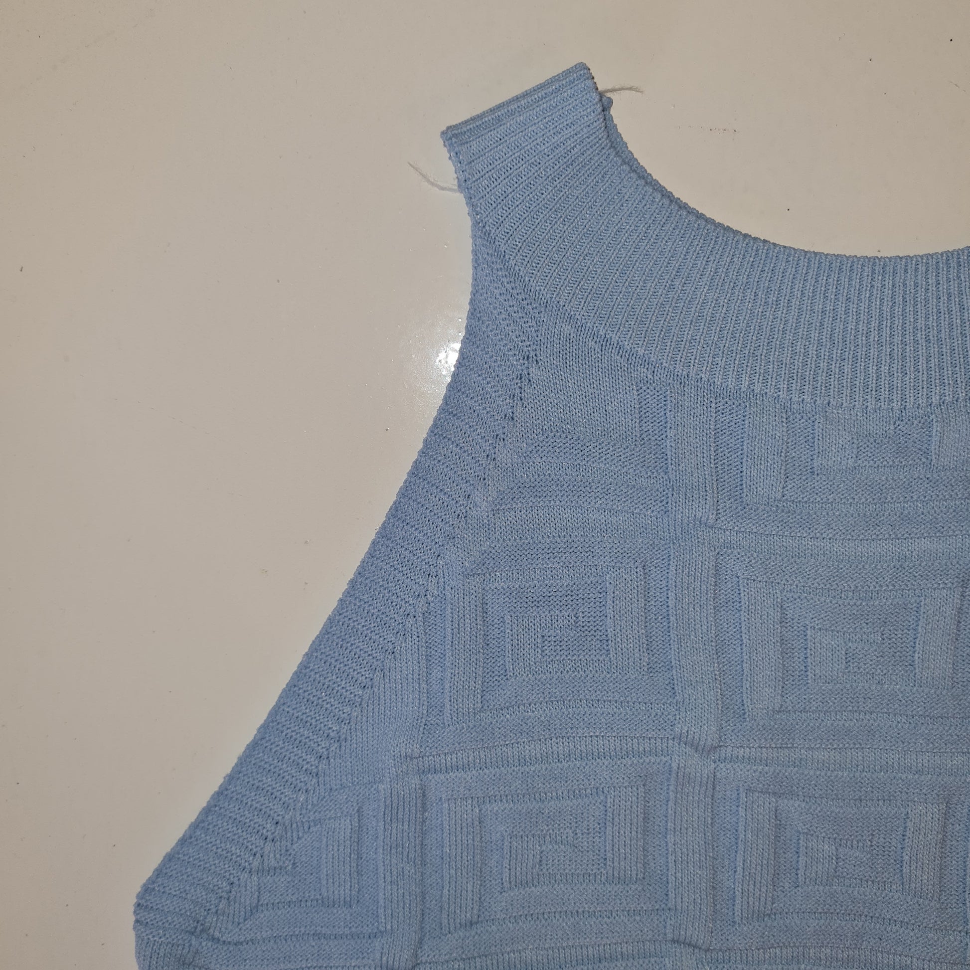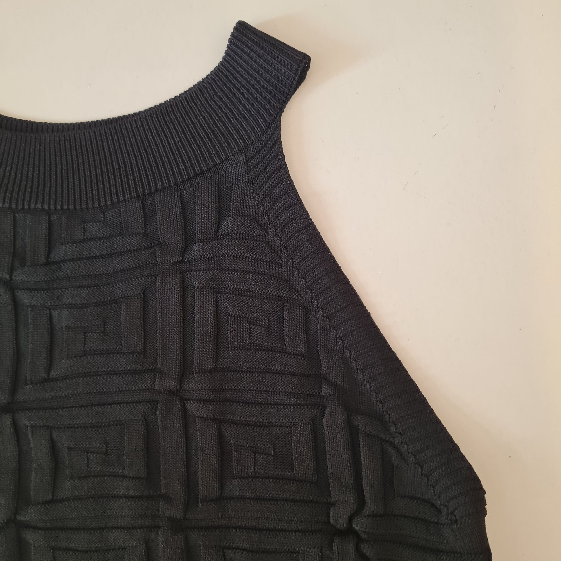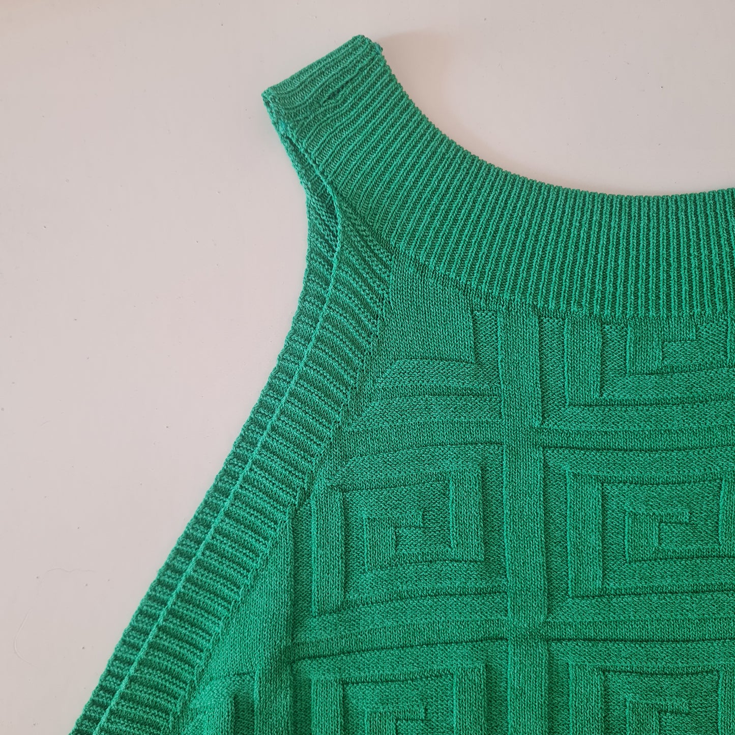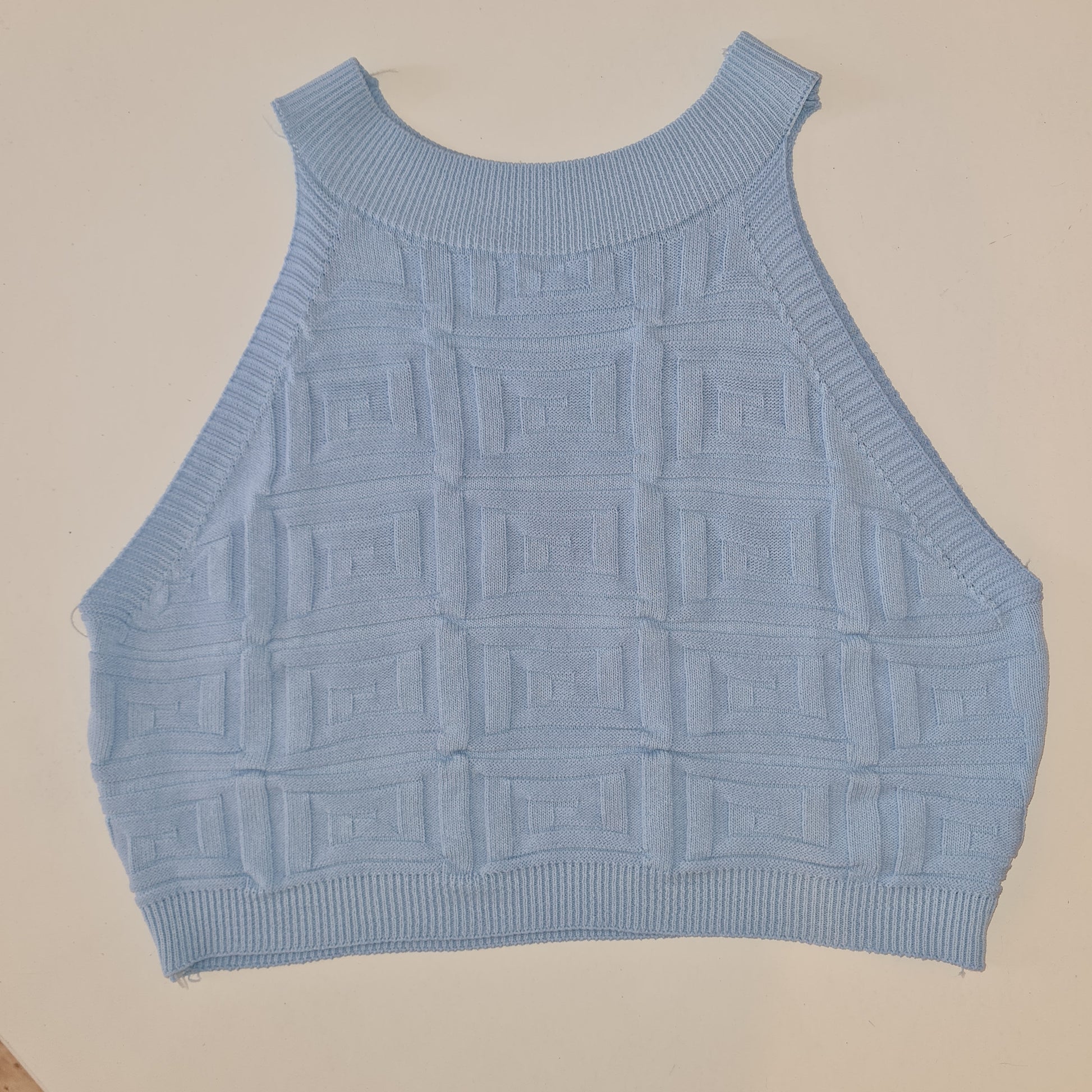 Ελαστικό τοπ πλεκτό με ανάγλυφα γεωμετρικά σχέδια με χοντρή πλέξη που δεν διαγράφει και δεν διαφανίζει.