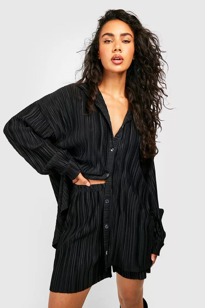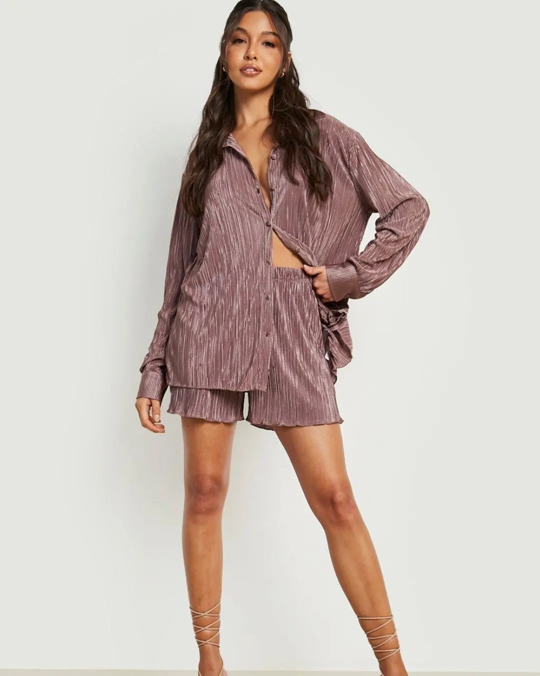 Πλισέ σετ με σορτσάκι και πουκάμισο