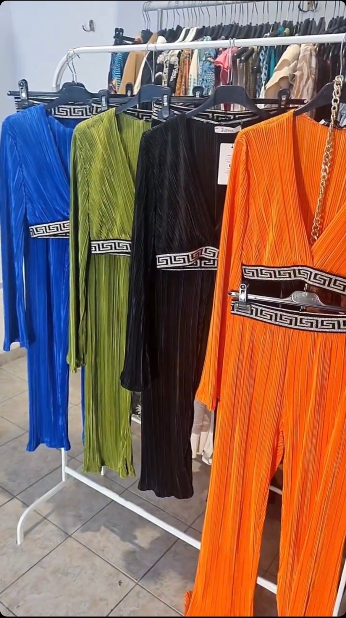 Το τοπ διαθέτει κι αυτό το ίδιο λάστιχο στο τελείωμα του, ενώ τα μανίκια είναι μακριά σε στυλ καμπάνα.Το στήθος ειναι σε γραμμή κρουαζέ V.Διαθέτει πολύ ελαστικότητα και καλύπτει απο xs εως xl.
