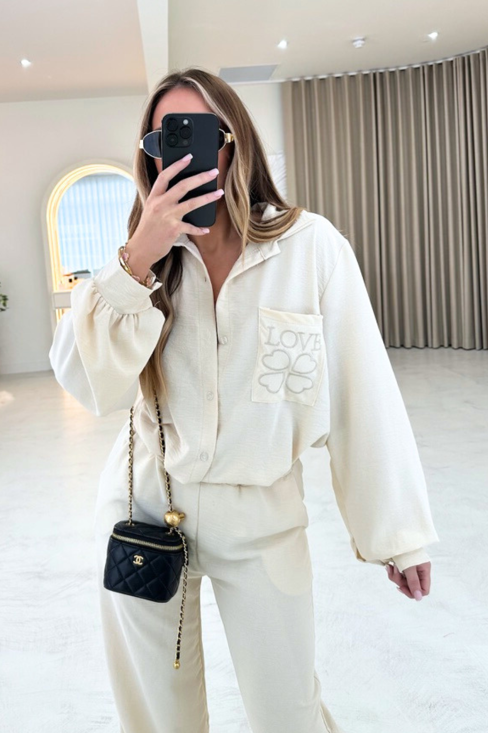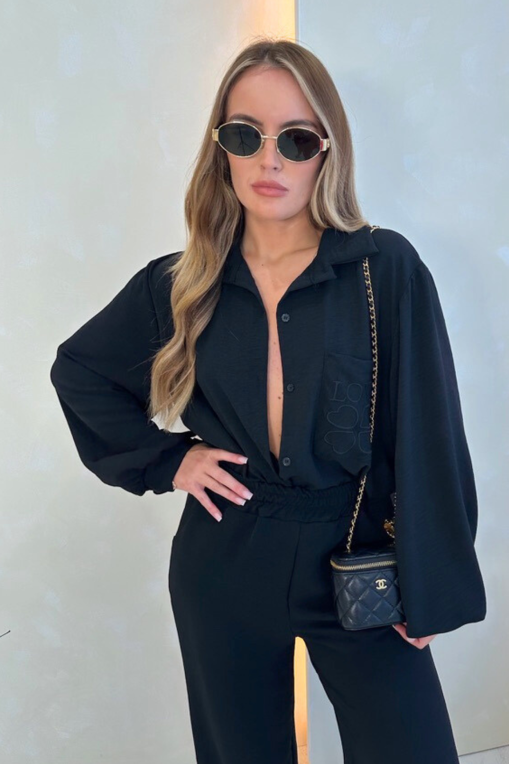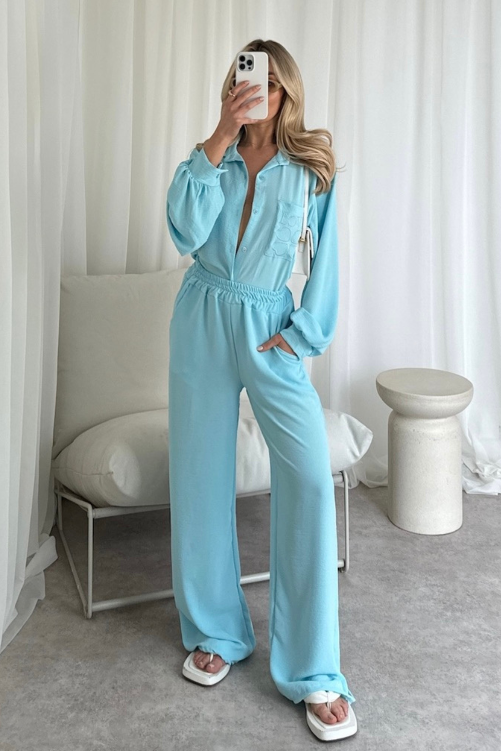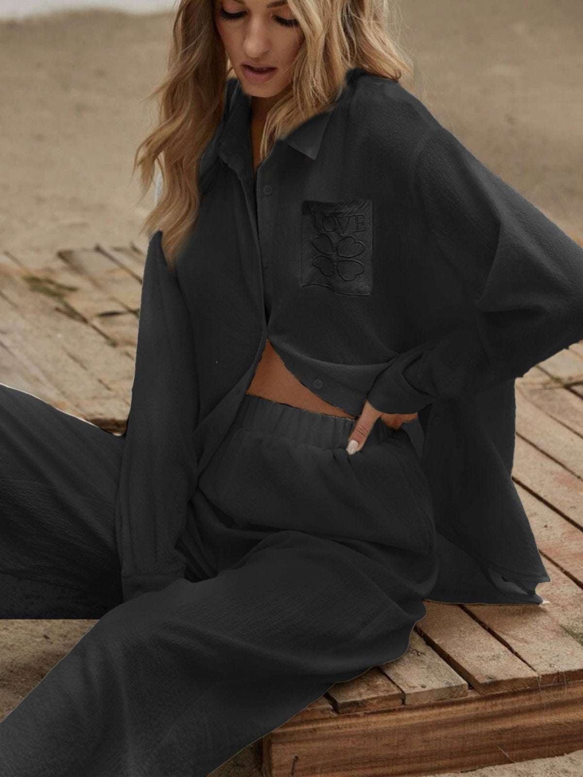 Άνετο σετ ανοιξιάτικο/καλοκαιρινό καθημερινό με πουκαμίσα oversize και παντελόνα ψηλόμεση σε άνετη γραμμή.