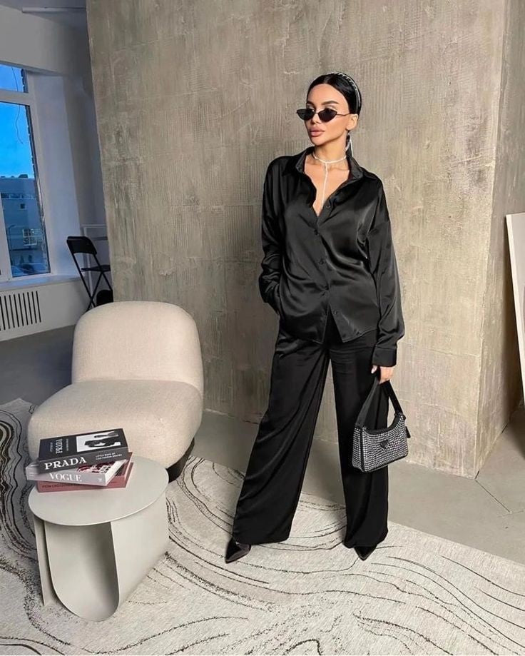 Σετ σατέν oversized με πουκάμισο και παντελόνα