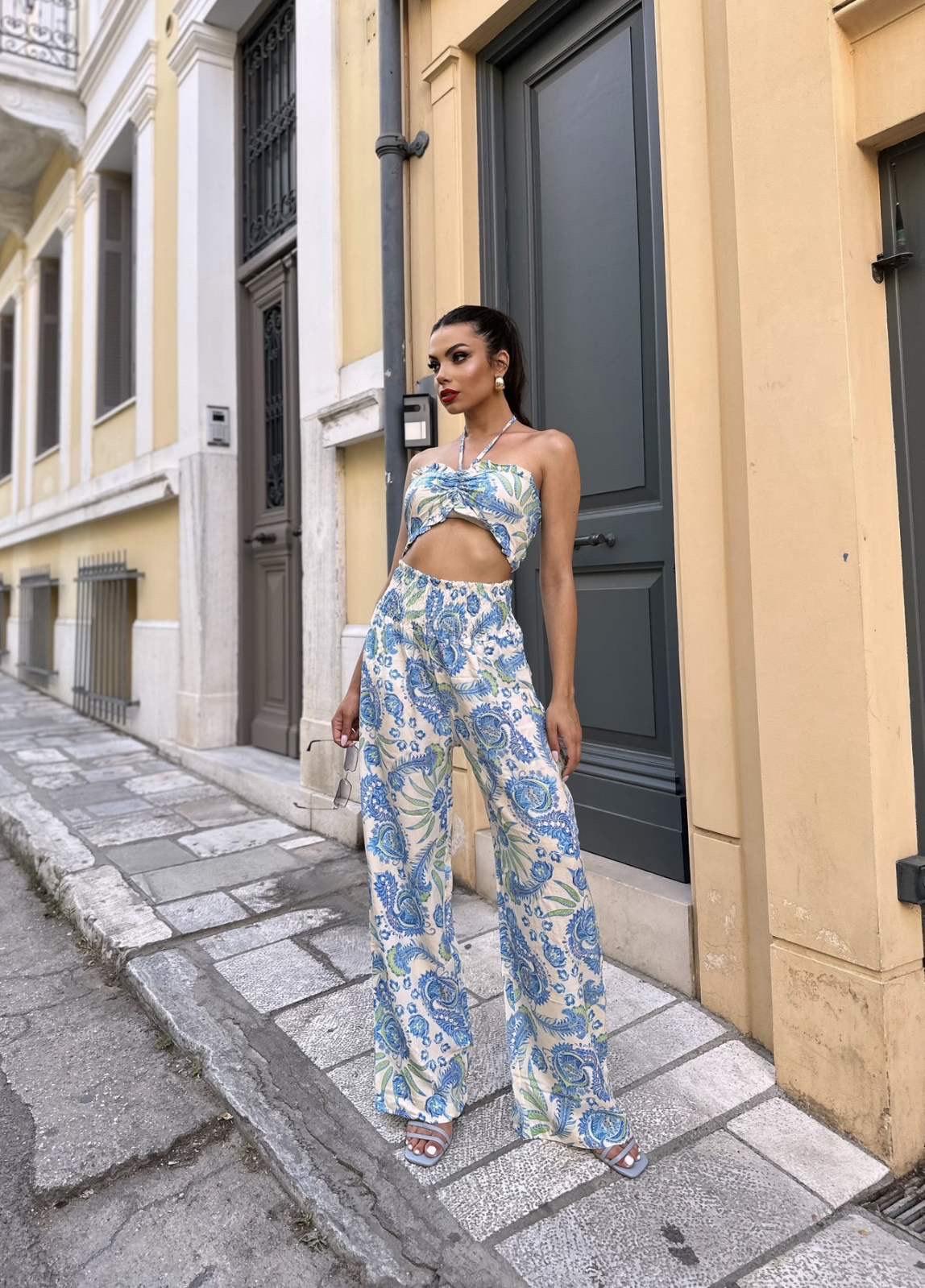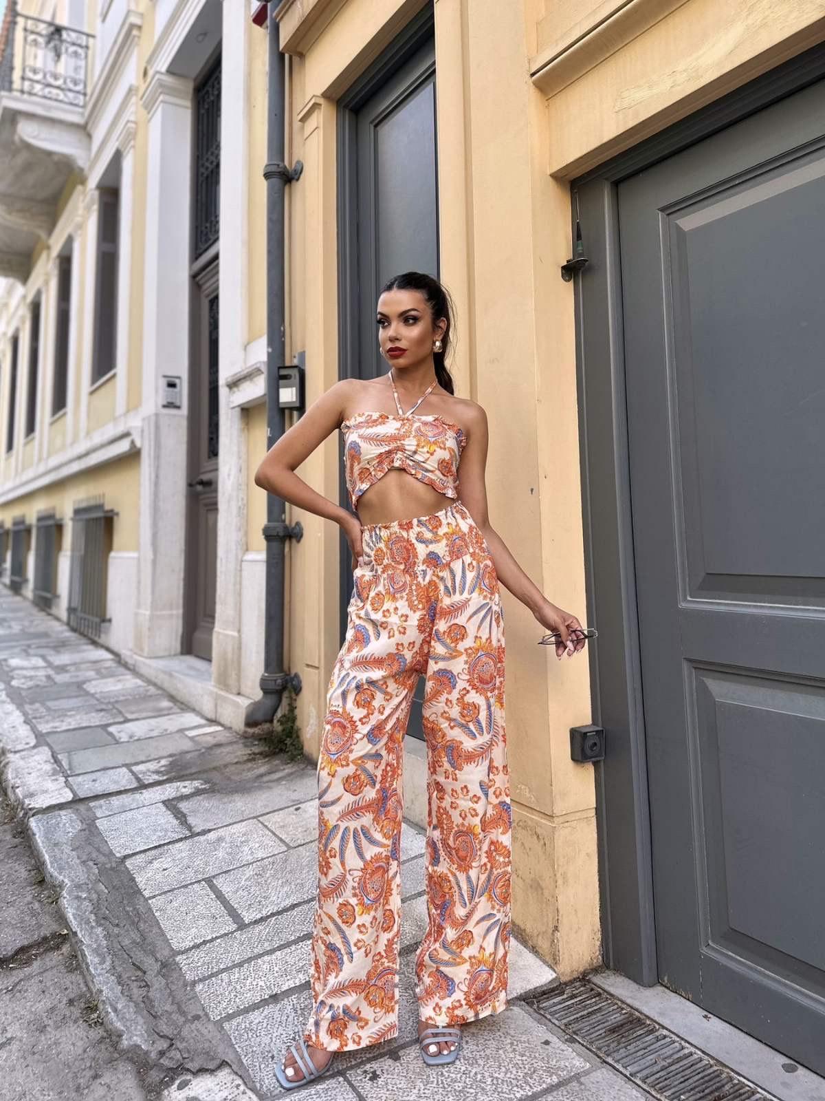 Σετ στράπλες τοπ με παντελόνα με λαχούρια