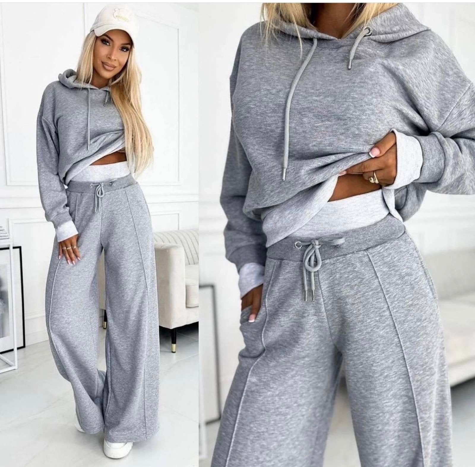 Σετ φόρμας σε άνετη γραμμή με φούτερ με κουκούλα και ψιλόμεση φόρμα παντελόνι με λάστιχο και κορδόνι στη μέση.