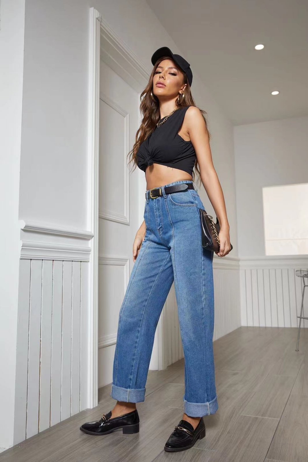 Τζιν ψηλόμεσο σε boyfriend γραμμή με λεπτομέρειες ραφές.True to size