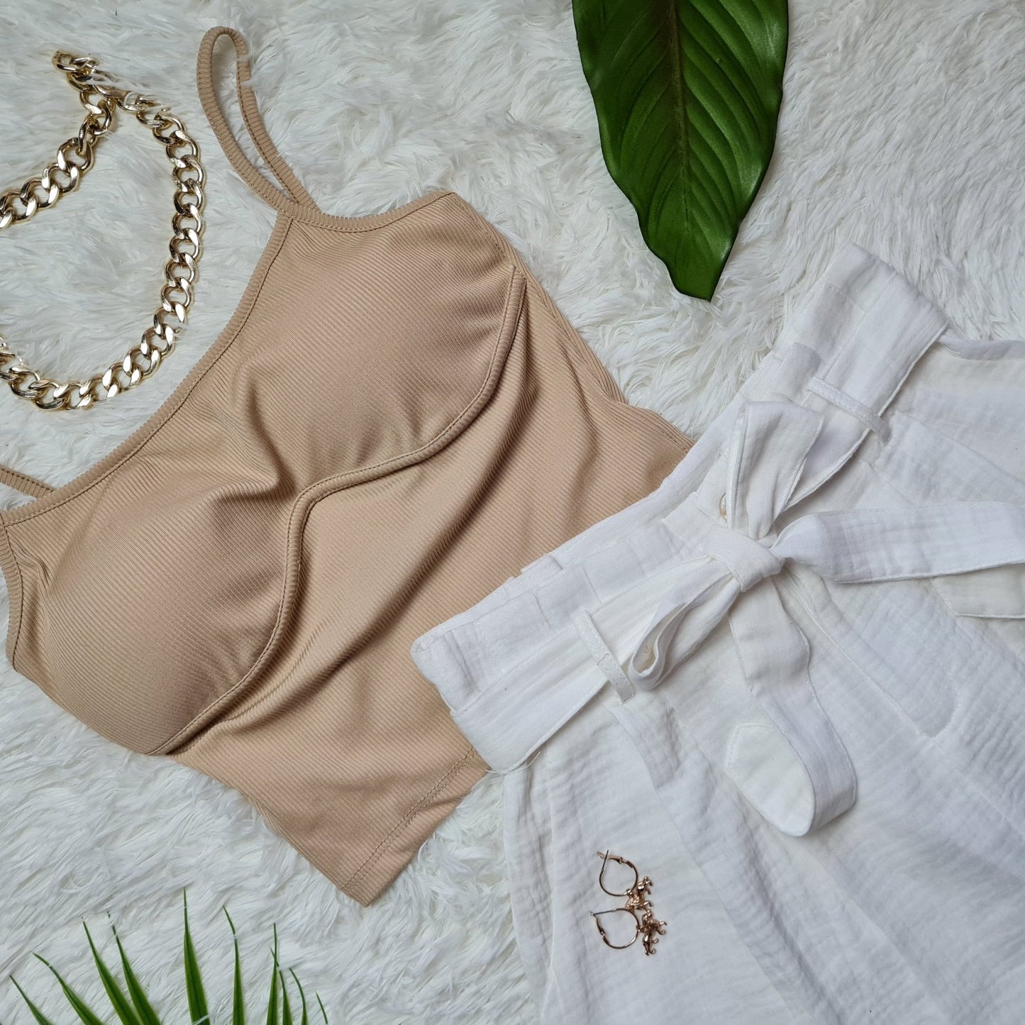 Ριπ τοπ τιραντάκι με ενίσχυση με caps στο στήθος ελαστικό.