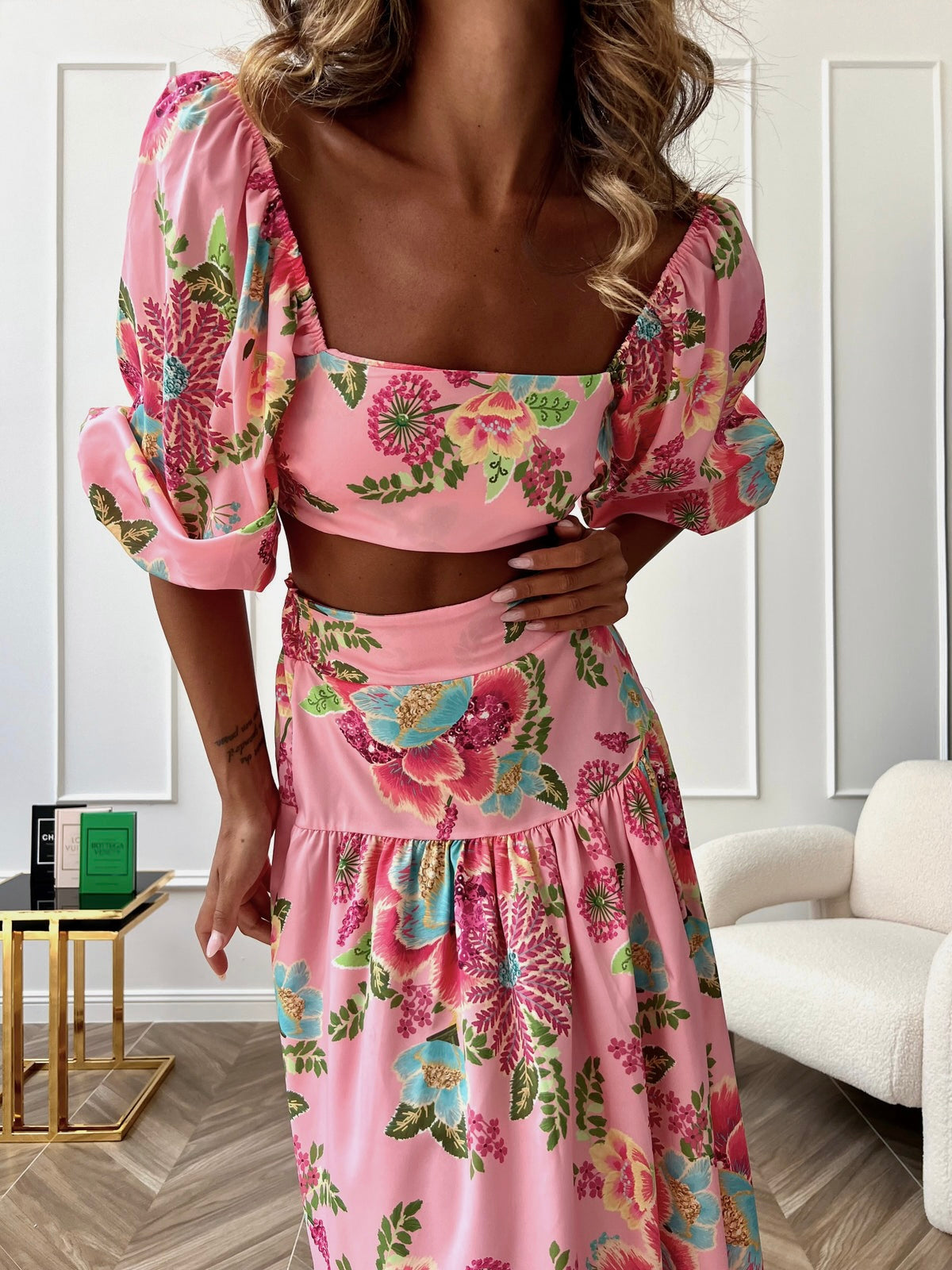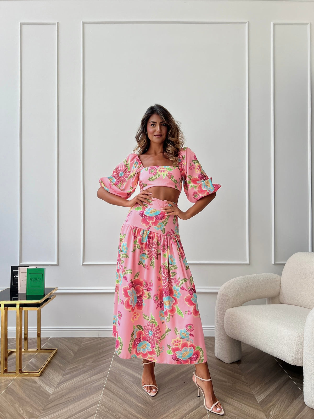 Πανέμορφο ανοιξιάτικο και καλοκαιρινό σετ φλοράλ με τοπ με φουσκωτά μανίκια και φούστα maxi!