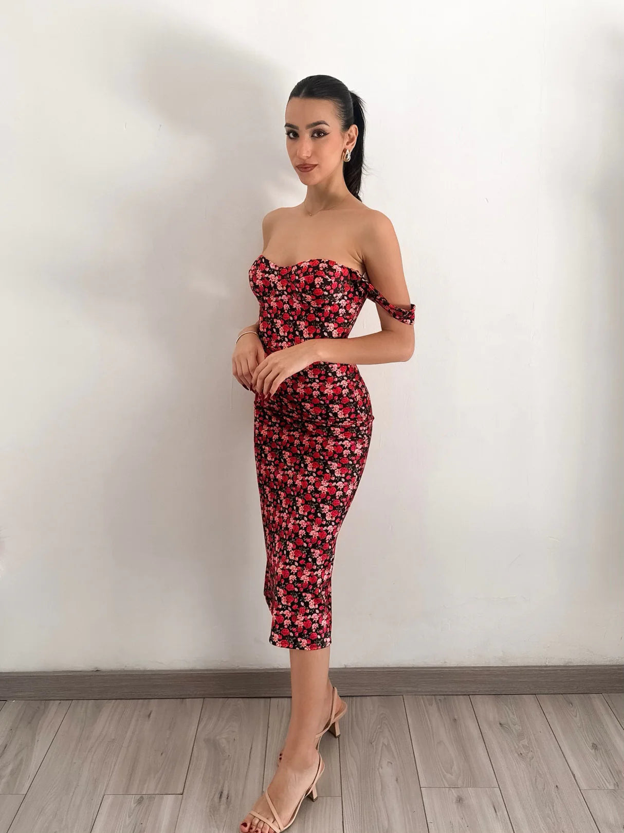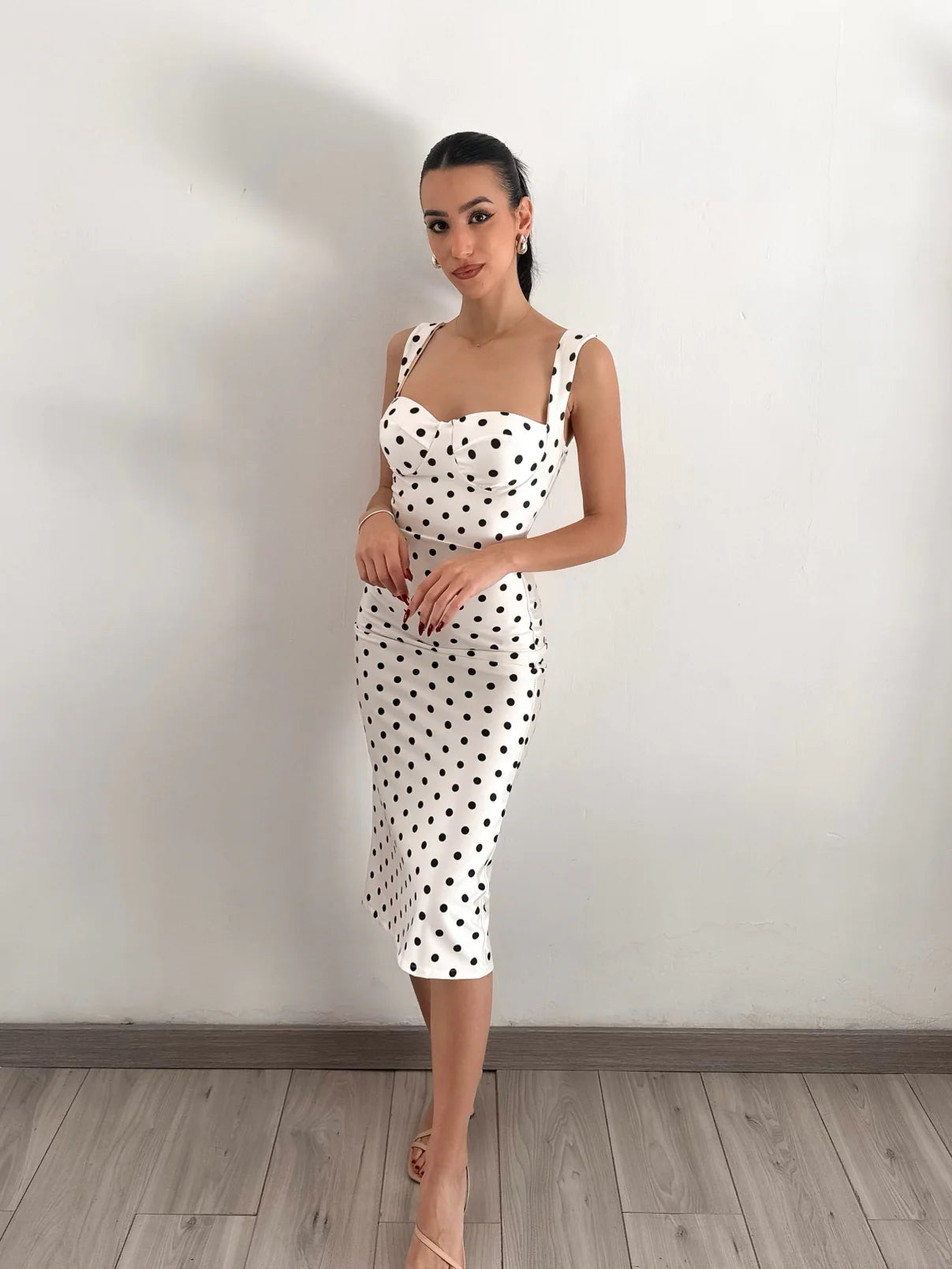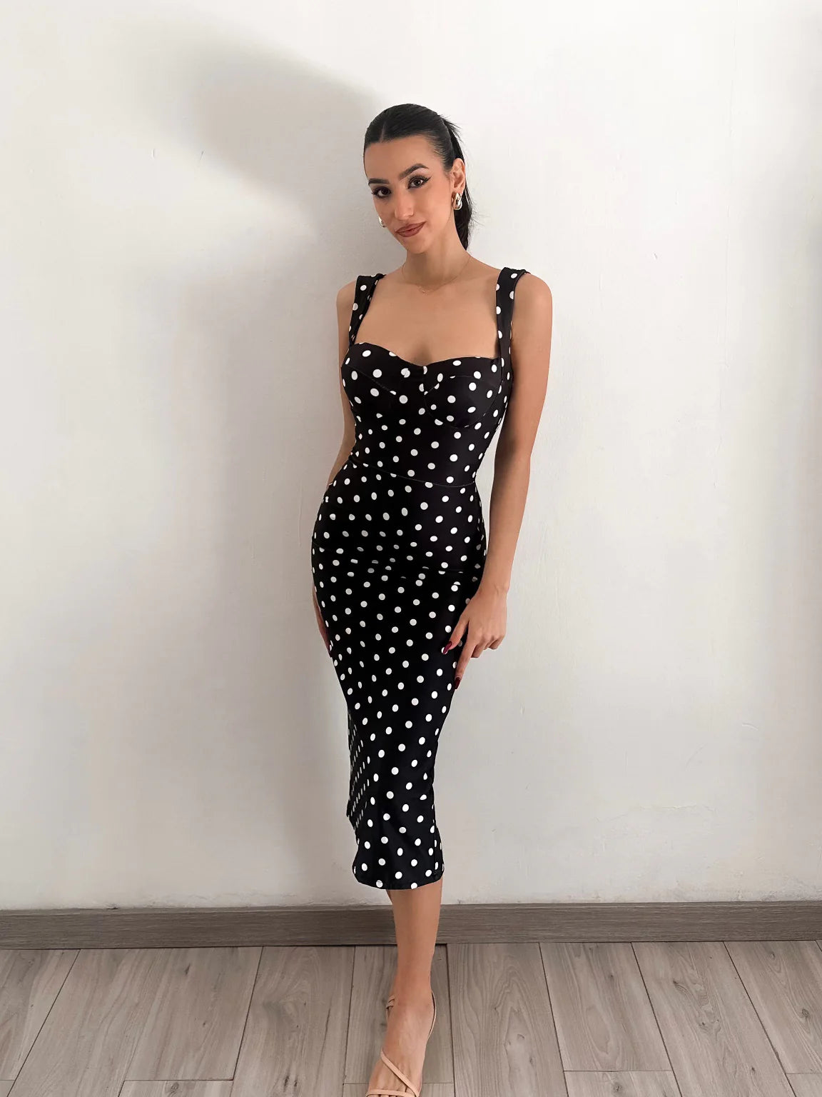 Ελαστικό φόρεμα midi σε μάκρος με καταπληκτική εφαρμογή. Μπούστο με ενίσχυση για έξτρα στήριξη. Διαθέσιμο σε λευκό μαύρο σκούρο μπλε και λεοπάρ. Ένα μέγεθος που καλύπτει μεγέθη xs s m l. Ιδανικό για καλεσμένη αλλά και για την έξοδο σου.Διαθέσιμο σε πουά μαύρο λευκό και navy blue, σε λεοπάρ και σε φλοράλ print.